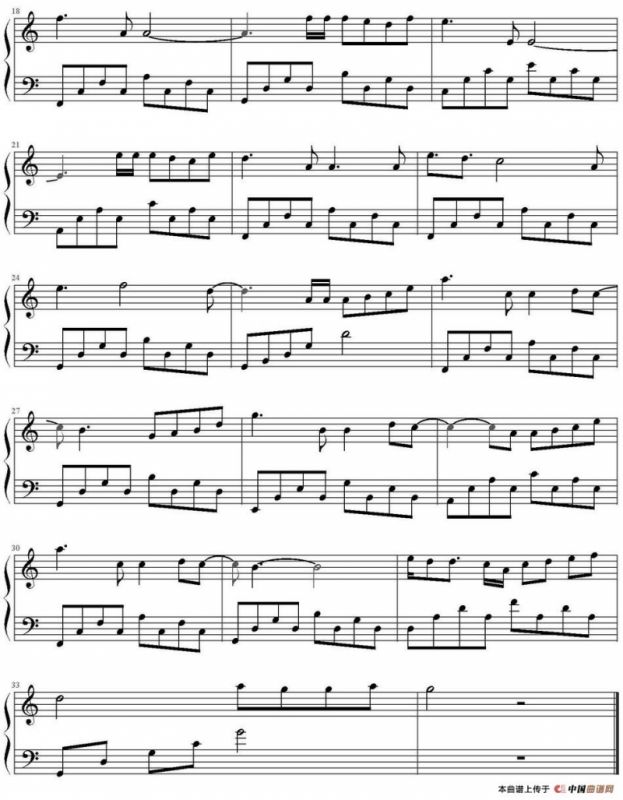 法国民间曲调小奏鸣曲 第二乐章 钢琴谱,简谱"