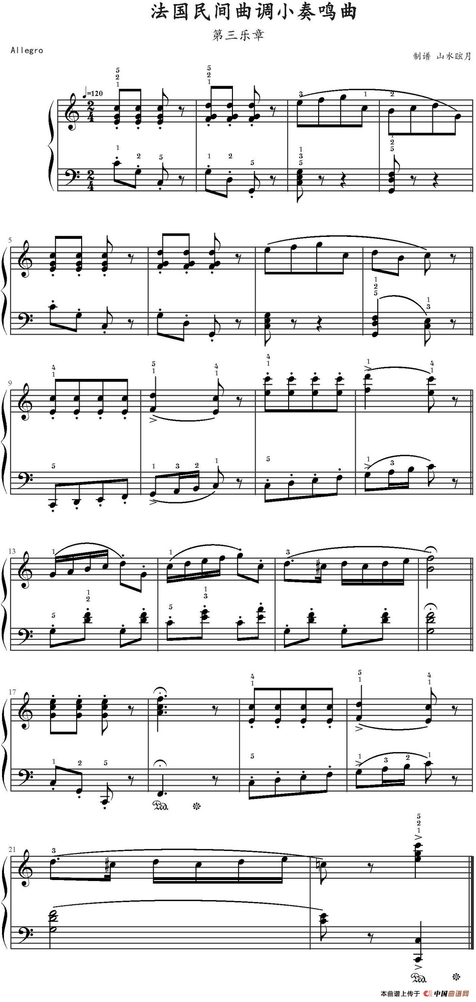 法国民间曲调小奏鸣曲 第三乐章 钢琴谱,简谱"