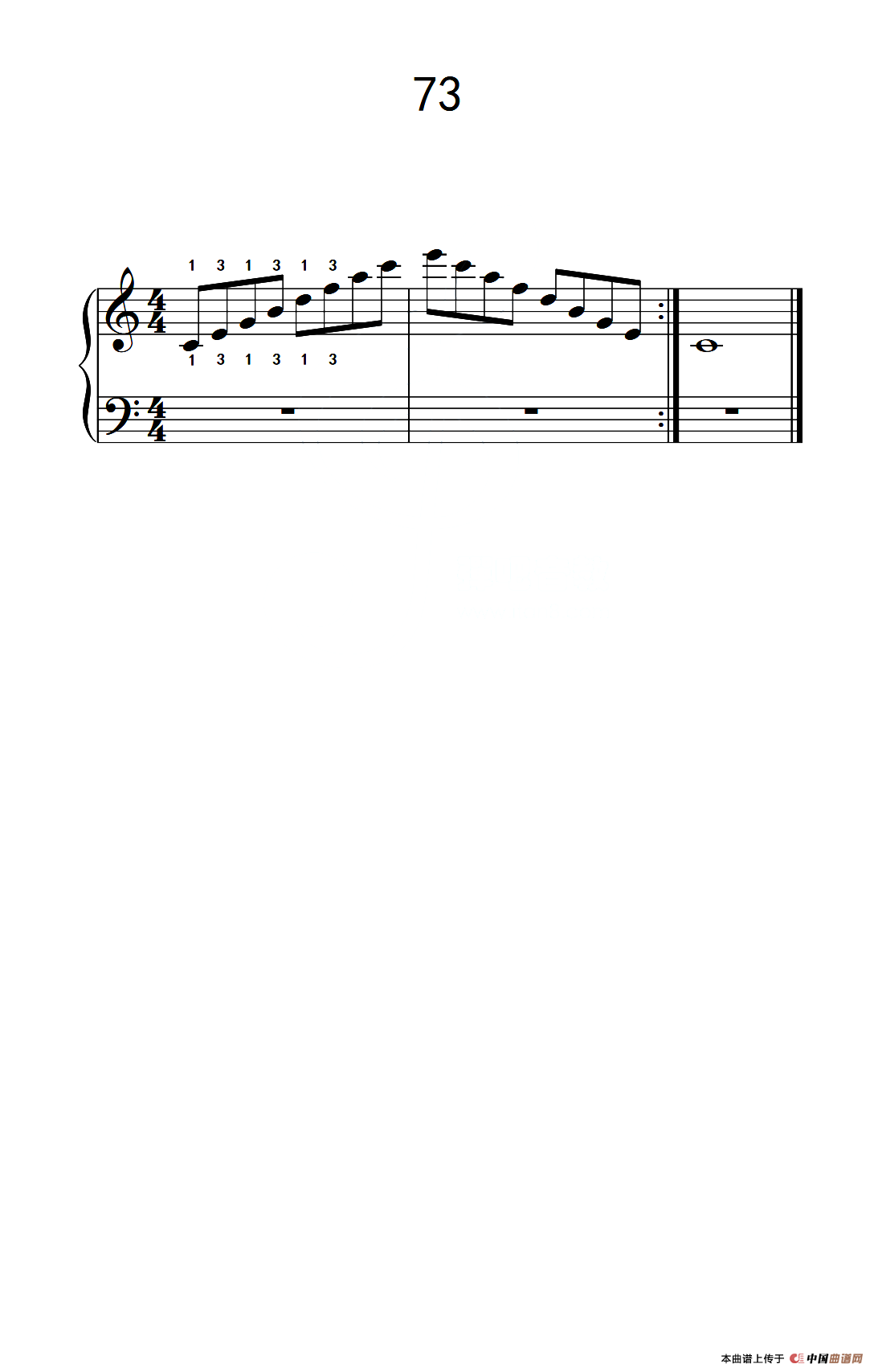 使大指灵活转动的单手练习 73(儿童钢琴手指练习 2)钢琴谱,简谱"