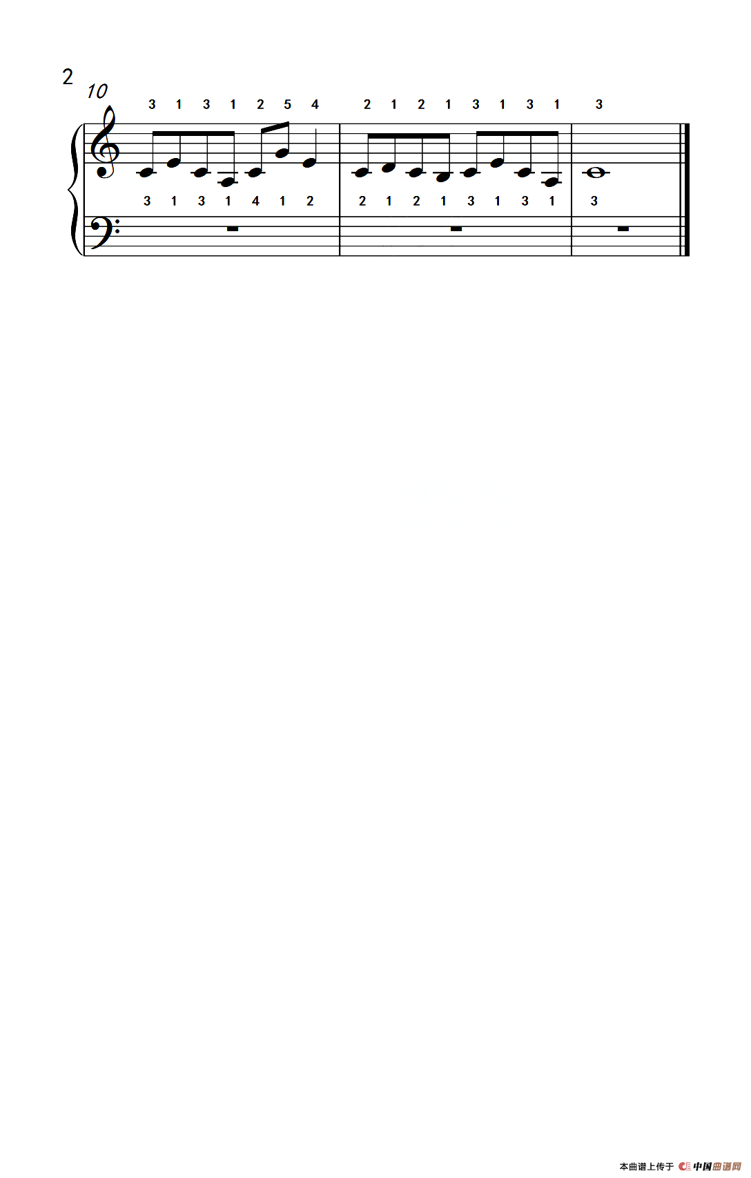 使大指灵活转动的单手练习 80(儿童钢琴手指练习 2)钢琴谱,简谱"