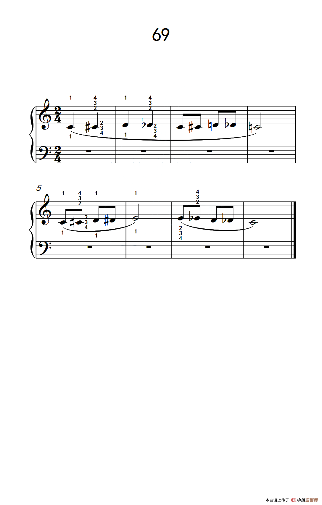 使大指灵活转动的单手练习 69(儿童钢琴手指练习 2)钢琴谱,简谱"
