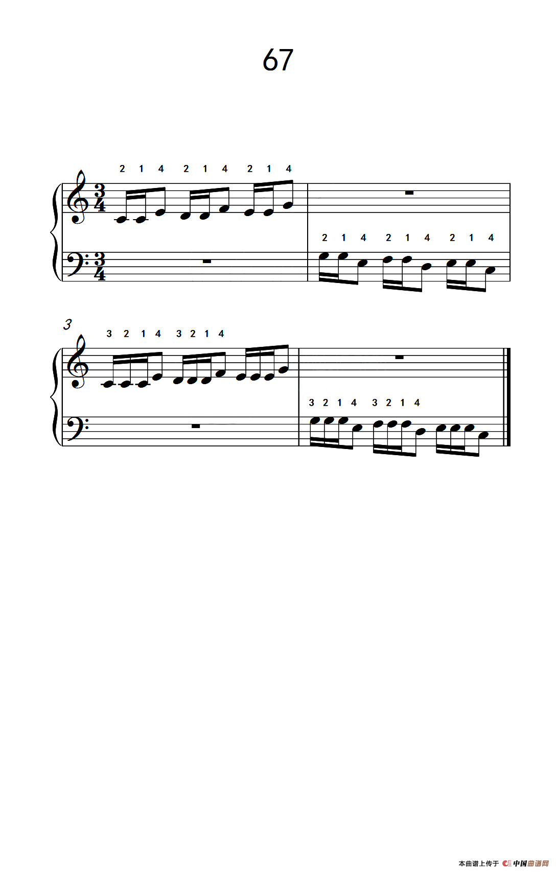 增强手腕及手指弹性的轮指练习 67(儿童钢琴手指练习 2)钢琴谱,简谱"