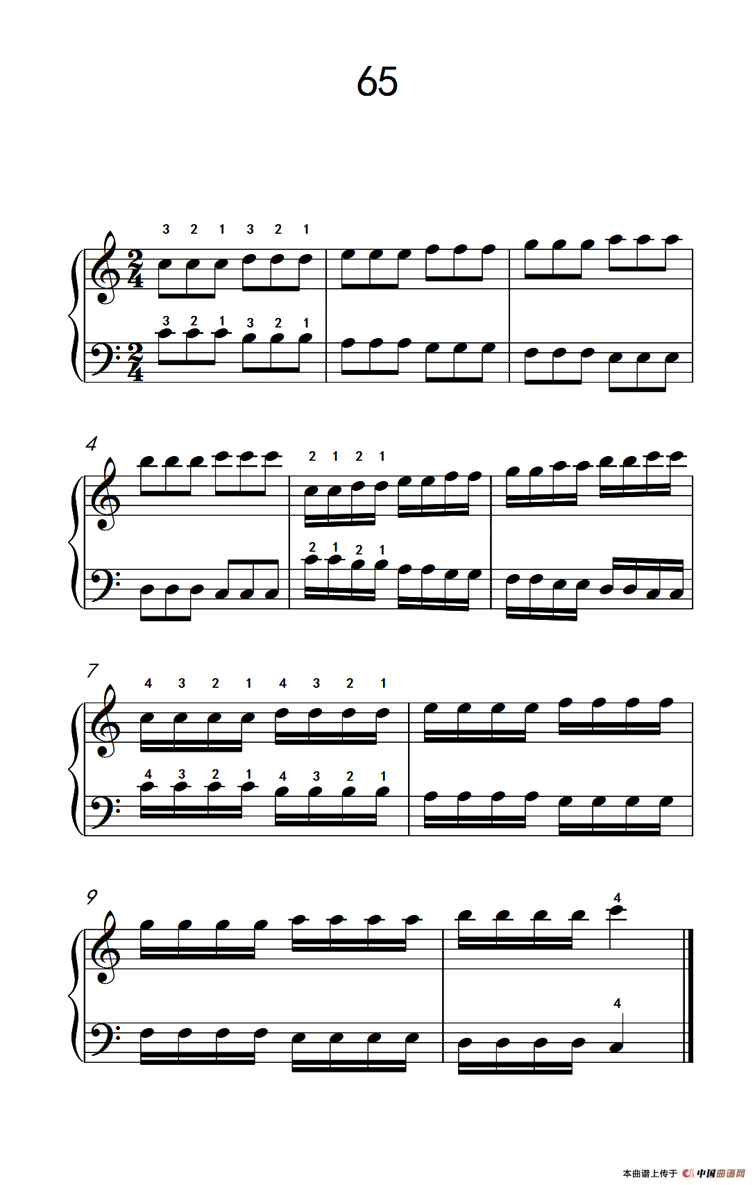 增强手腕及手指弹性的轮指练习 65(儿童钢琴手指练习 2)钢琴谱,简谱"