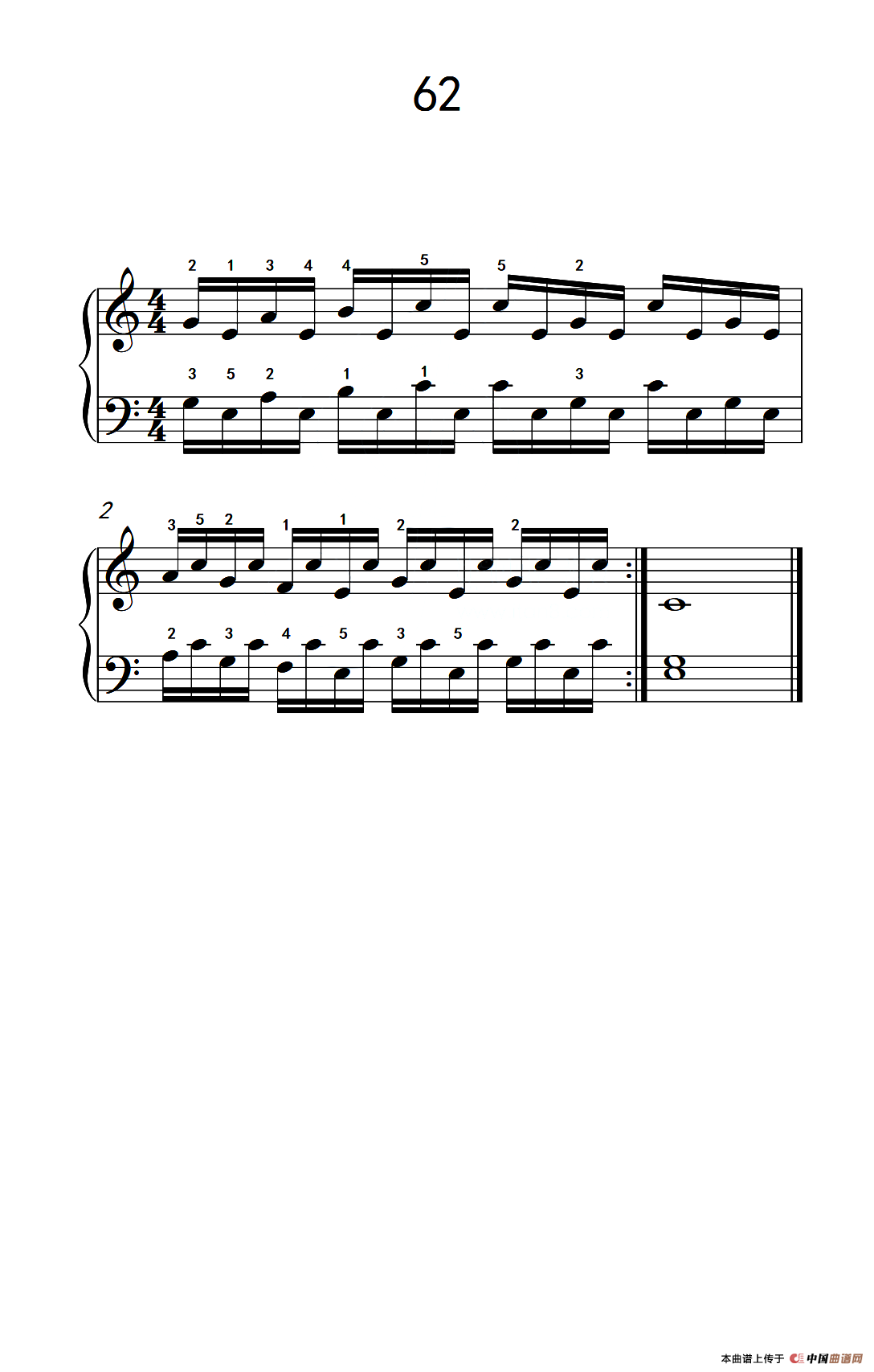 用手臂及手腕带动手指的练习 62(儿童钢琴手指练习 2)钢琴谱,简谱"