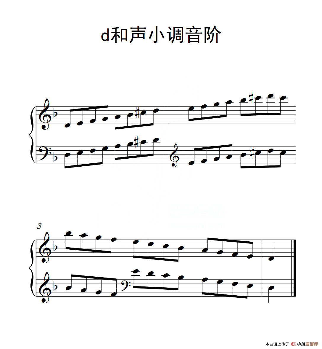 第一级 d和声小调音阶(中国音乐学院钢琴考级作品1~6级)钢琴谱,简谱"