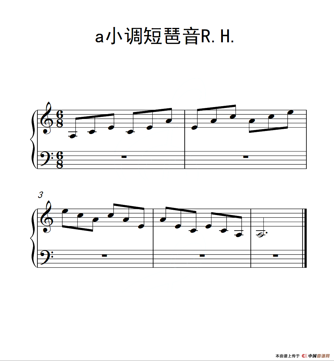 第一级 a小调短琶音R.H.(中国音乐学院钢琴考级作品1~6级)钢琴谱,简谱"