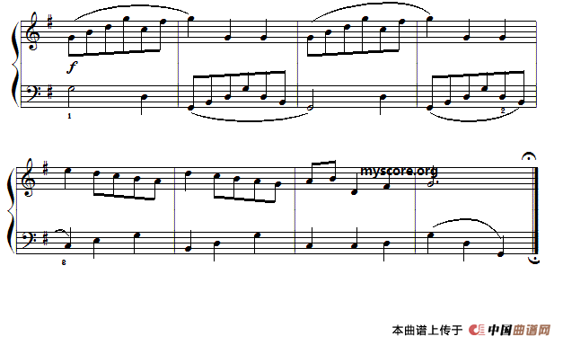 巴赫初级钢琴曲之七:摩塞塔舞曲钢琴谱,简谱"