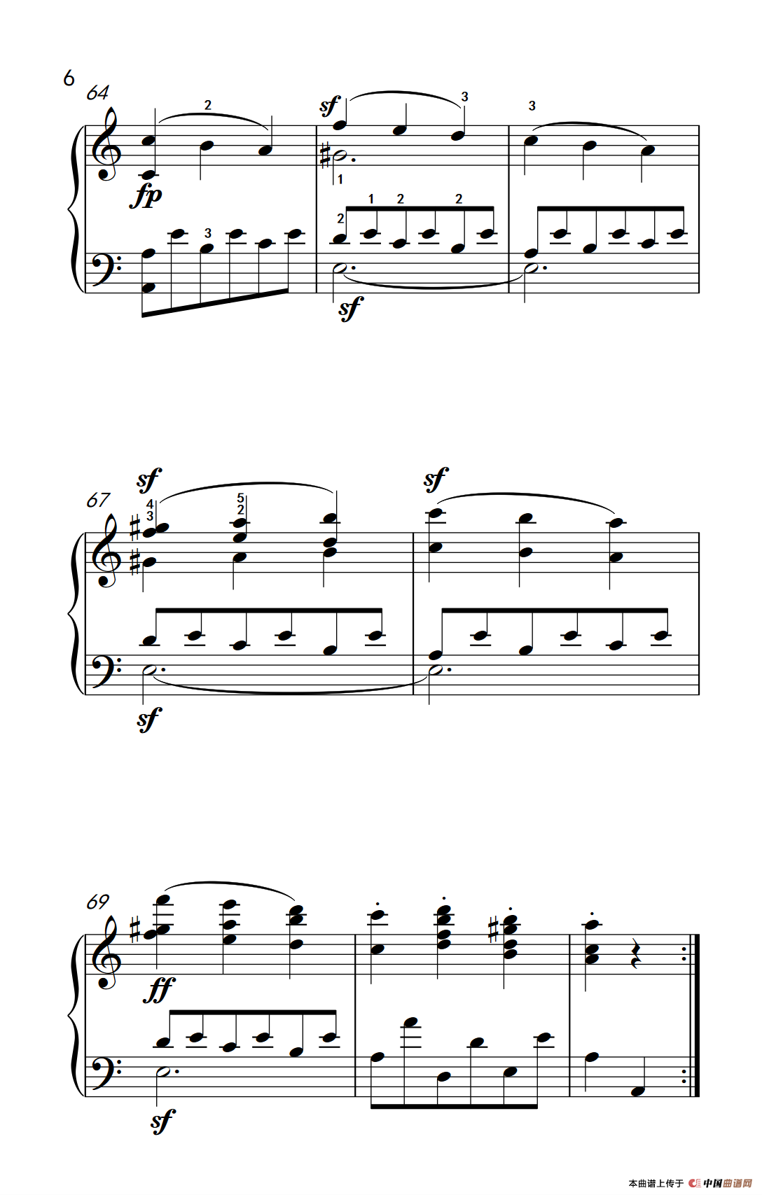 库劳A小调小奏鸣曲Op.88,NO.3钢琴谱,简谱"