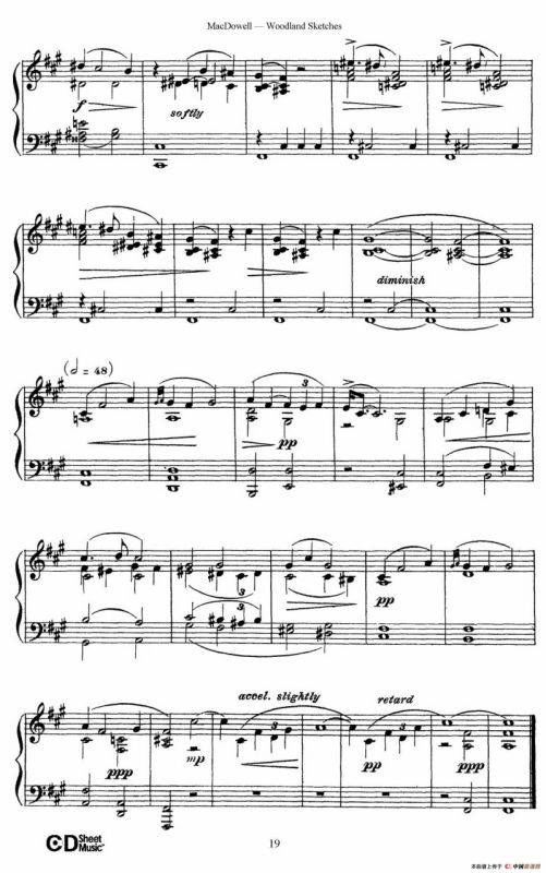 Woodland Sketches Op.51(森林素描·4)钢琴谱,简谱"