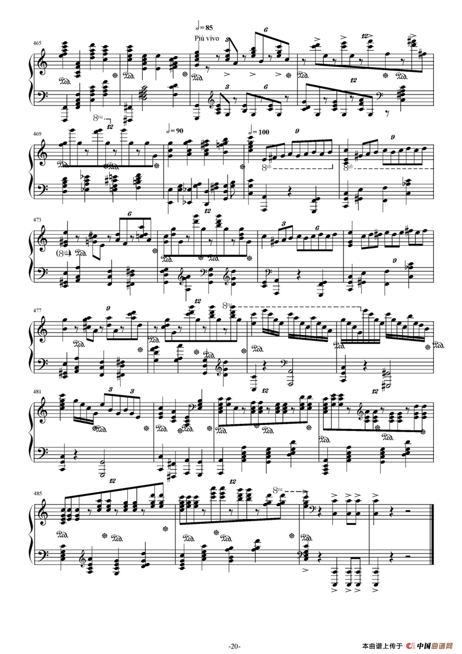 c小调第二钢琴协奏曲第三乐章独奏版钢琴谱,简谱"