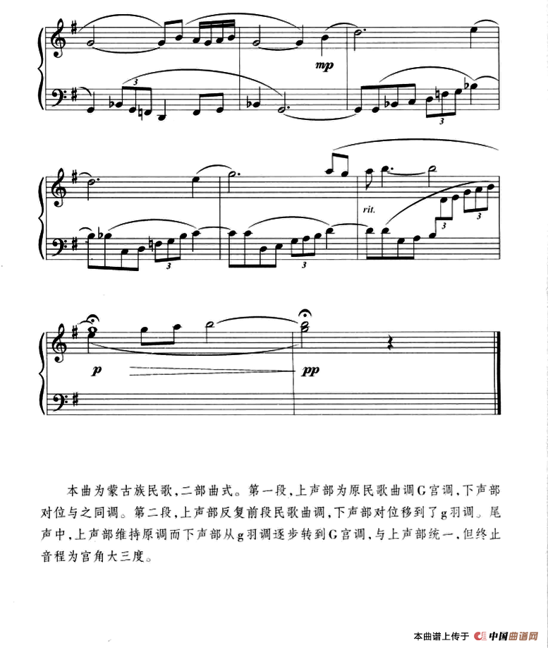 中国民歌复调钢琴作品:牧歌钢琴谱,简谱"
