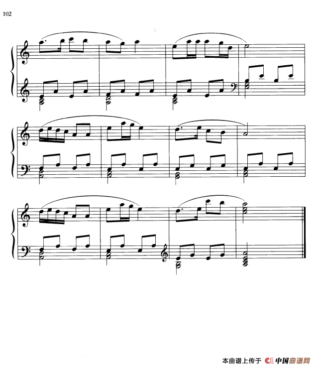 110首中国民歌钢琴小曲集:刨洋芋钢琴谱,简谱"