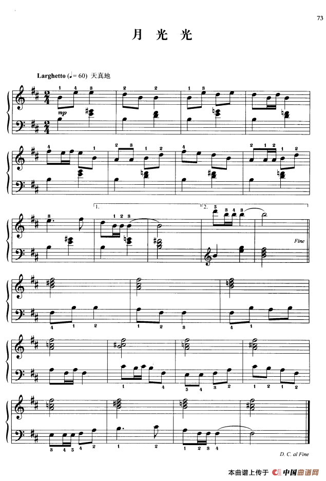 110首中国民歌钢琴小曲集:月光光钢琴谱,简谱"