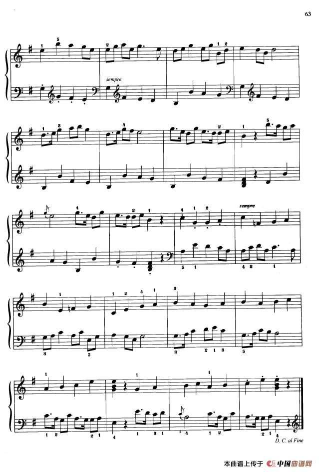 110首中国民歌钢琴小曲集:凤阳花鼓(之一)钢琴谱,简谱"