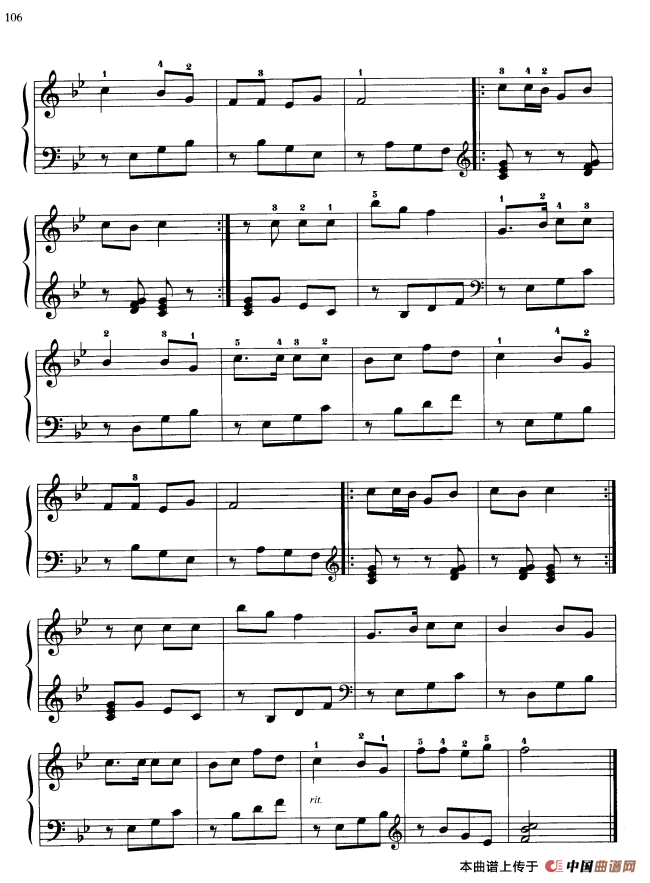 110首中国民歌钢琴小曲集:小拜年钢琴谱,简谱"