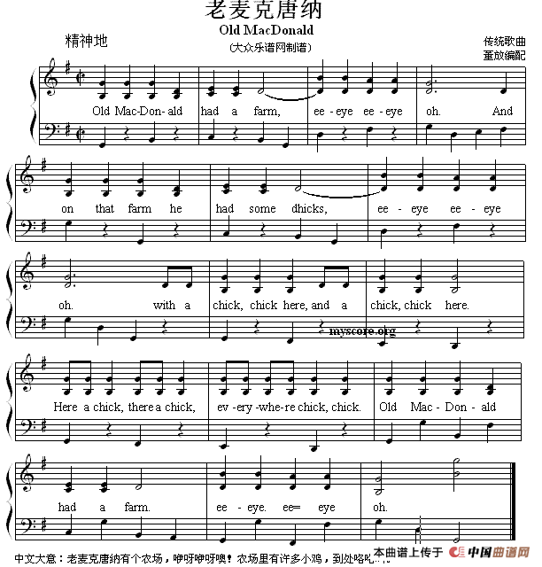 Old MarDoald(老麦克唐纳)(弹唱谱)钢琴谱,简谱"