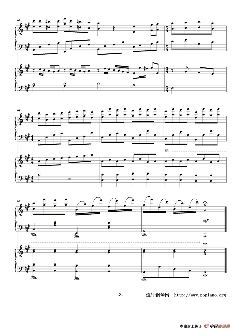 钢琴课(The Piano)(选自澳大利亚电影《钢琴课》)钢琴谱,简谱"