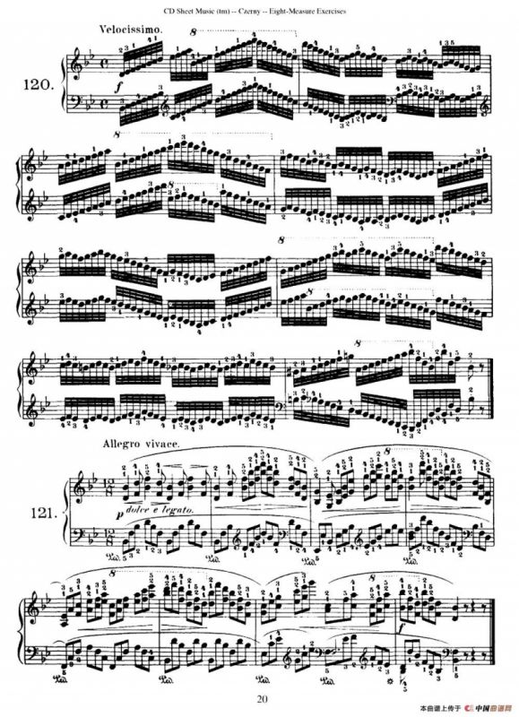 160 Eight- Measure Exercises.Op.821(车尔尼160首钢琴八小节练习曲(104——121))钢琴谱,简谱"
