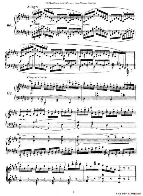 160 Eight- Measure Exercises.Op.821(车尔尼160首钢琴八小节练习曲(72——87))钢琴谱,简谱"