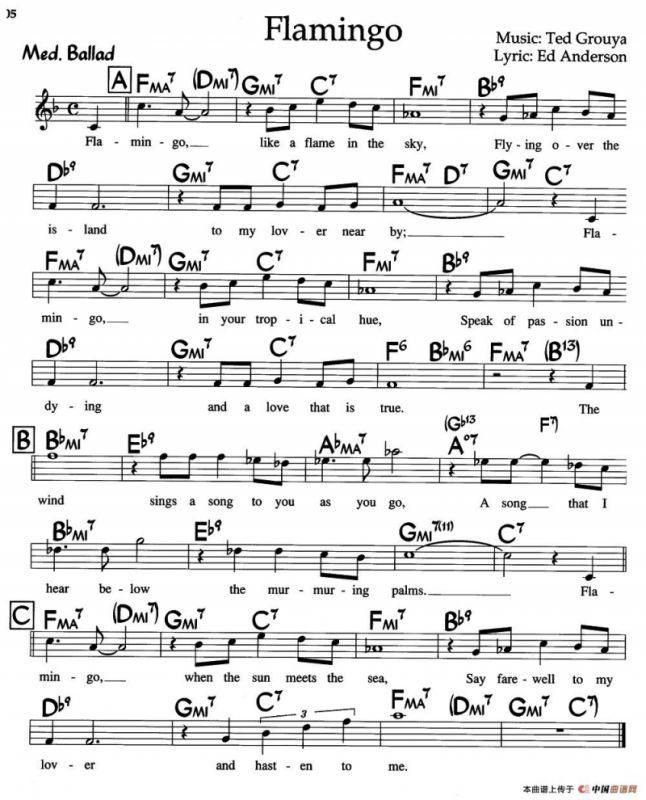 Flamingo(火烈鸟)(爵士钢琴曲)钢琴谱,简谱"