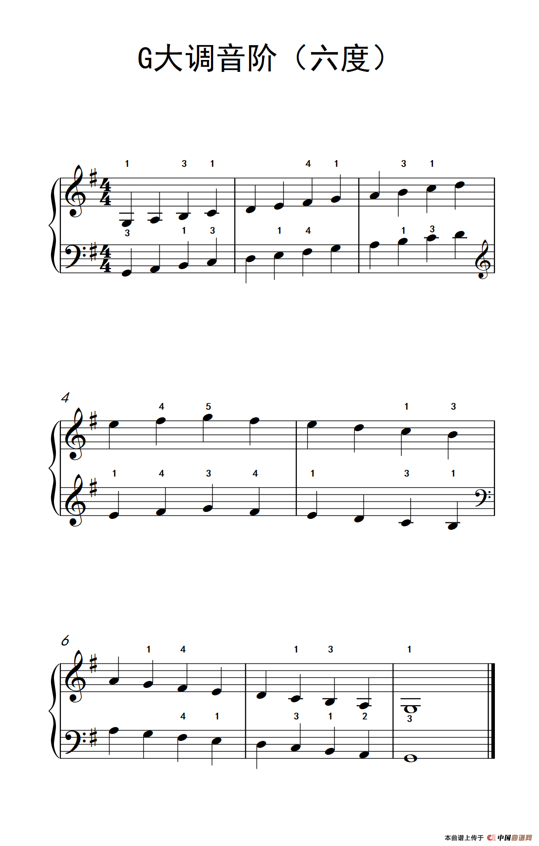 G大调音阶(六度)(儿童钢琴练习曲)钢琴谱,简谱"