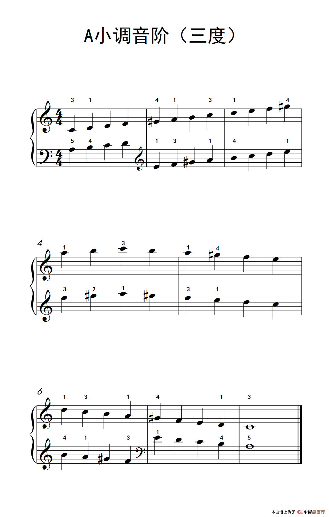 A小调音阶(三度)(儿童钢琴练习曲)钢琴谱,简谱"