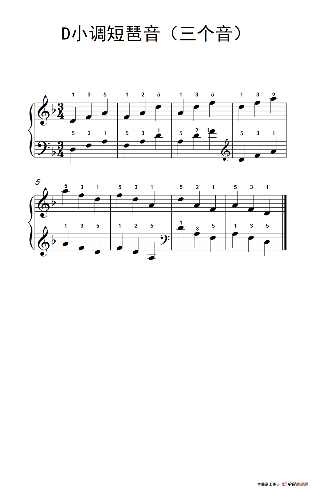 D小调短琶音(三个音)(儿童钢琴练习曲)钢琴谱,简谱"