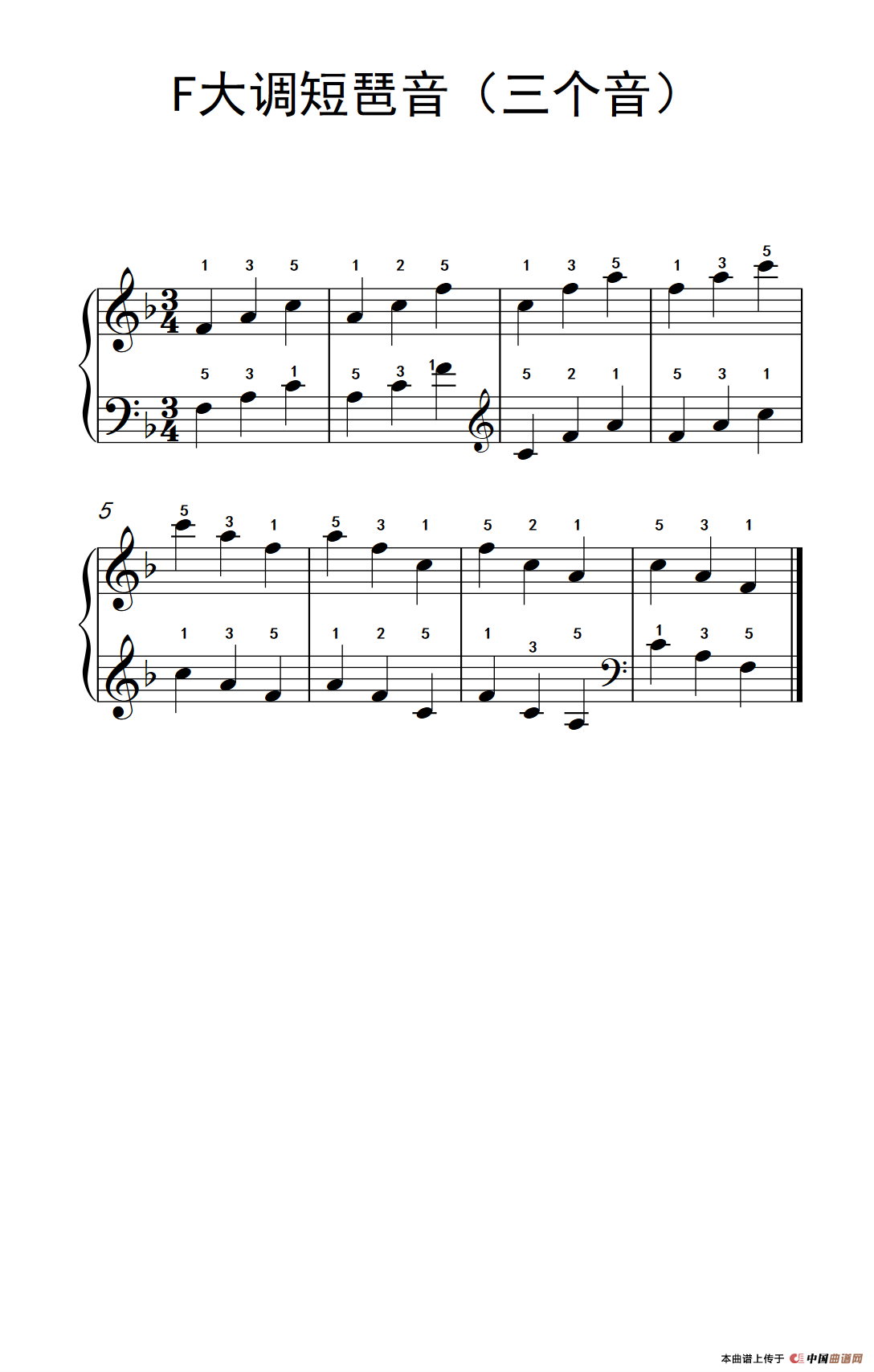 F大调短琶音(三个音)(儿童钢琴练习曲)钢琴谱,简谱"