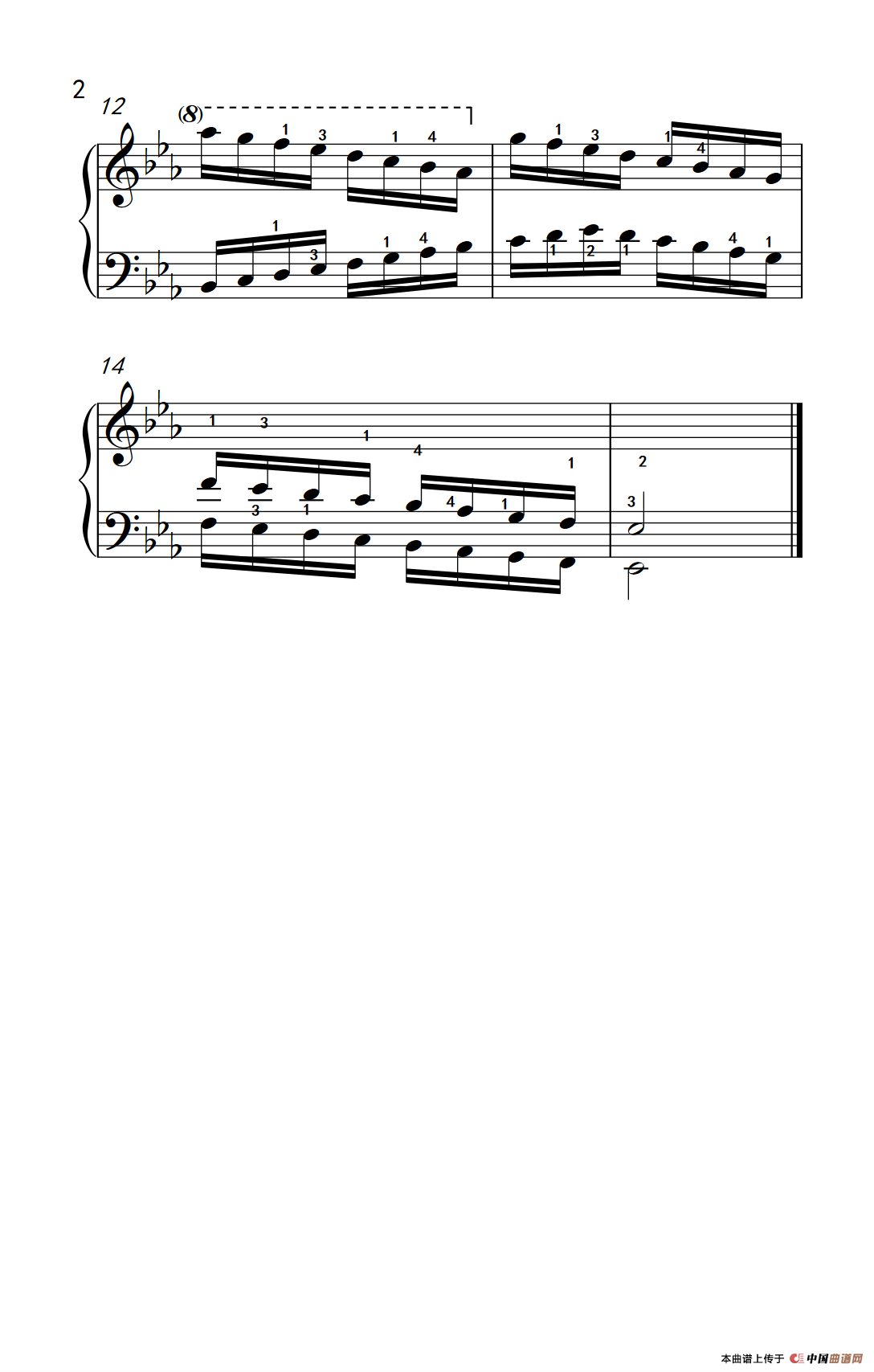 降E大调音阶(反向四个八度)(孩子们的钢琴音阶、和弦与琶音 2)钢琴谱,简谱"