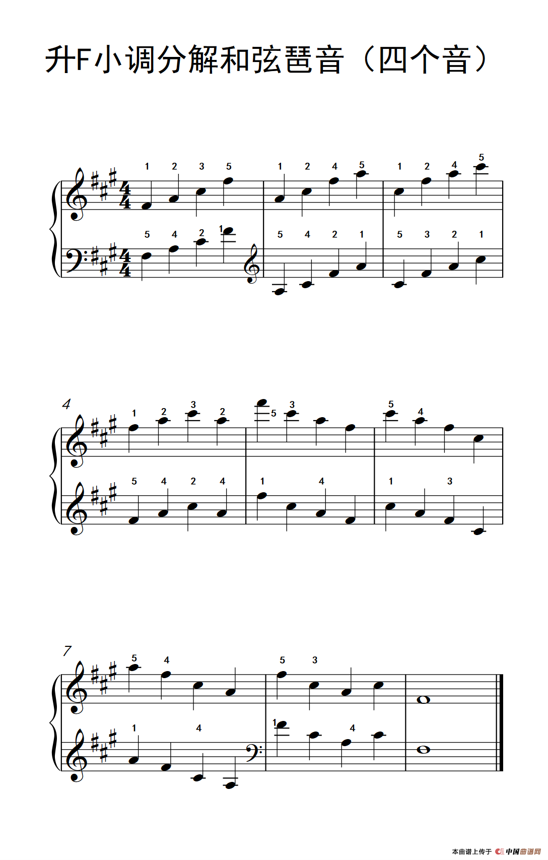 升F小调分解和弦琶音(四个音)(儿童钢琴练习曲)钢琴谱,简谱"