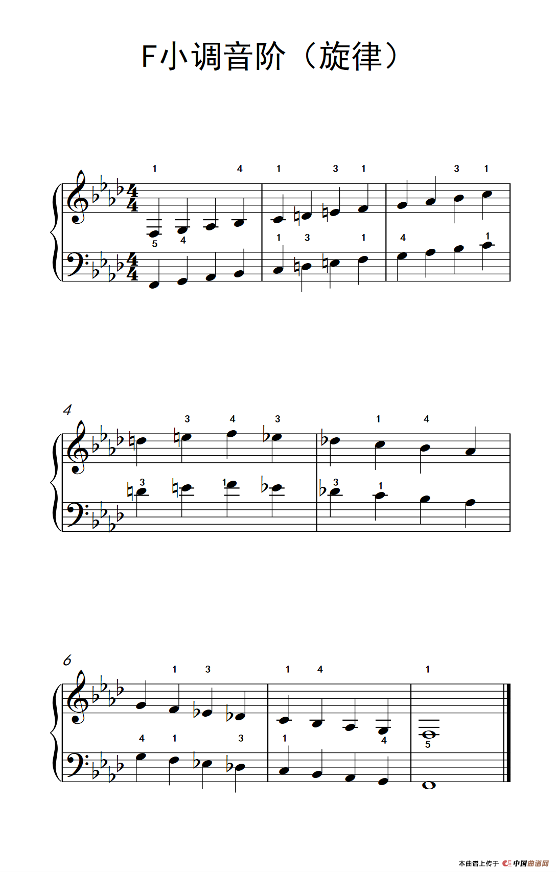 F小调音阶(旋律)(孩子们的钢琴音阶、和弦与琶音 2)钢琴谱,简谱"