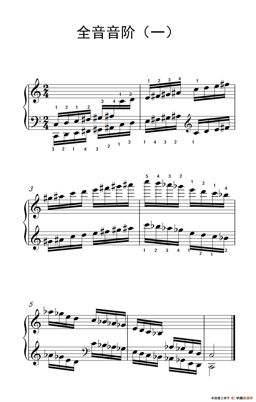 全音音阶(一)(孩子们的钢琴音阶、和弦与琶音 2)钢琴谱,简谱"