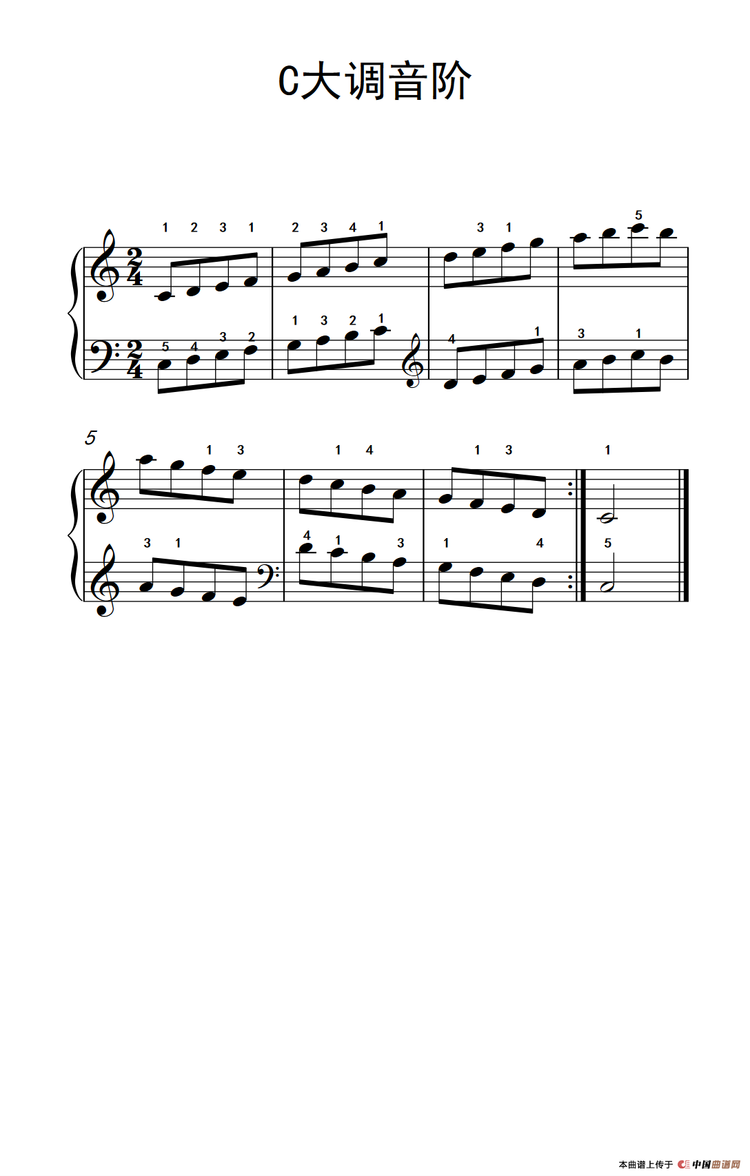 第二级 1.C大调音阶(中央音乐学院 钢琴(业余)考级教程 1-3级)钢琴谱,简谱"