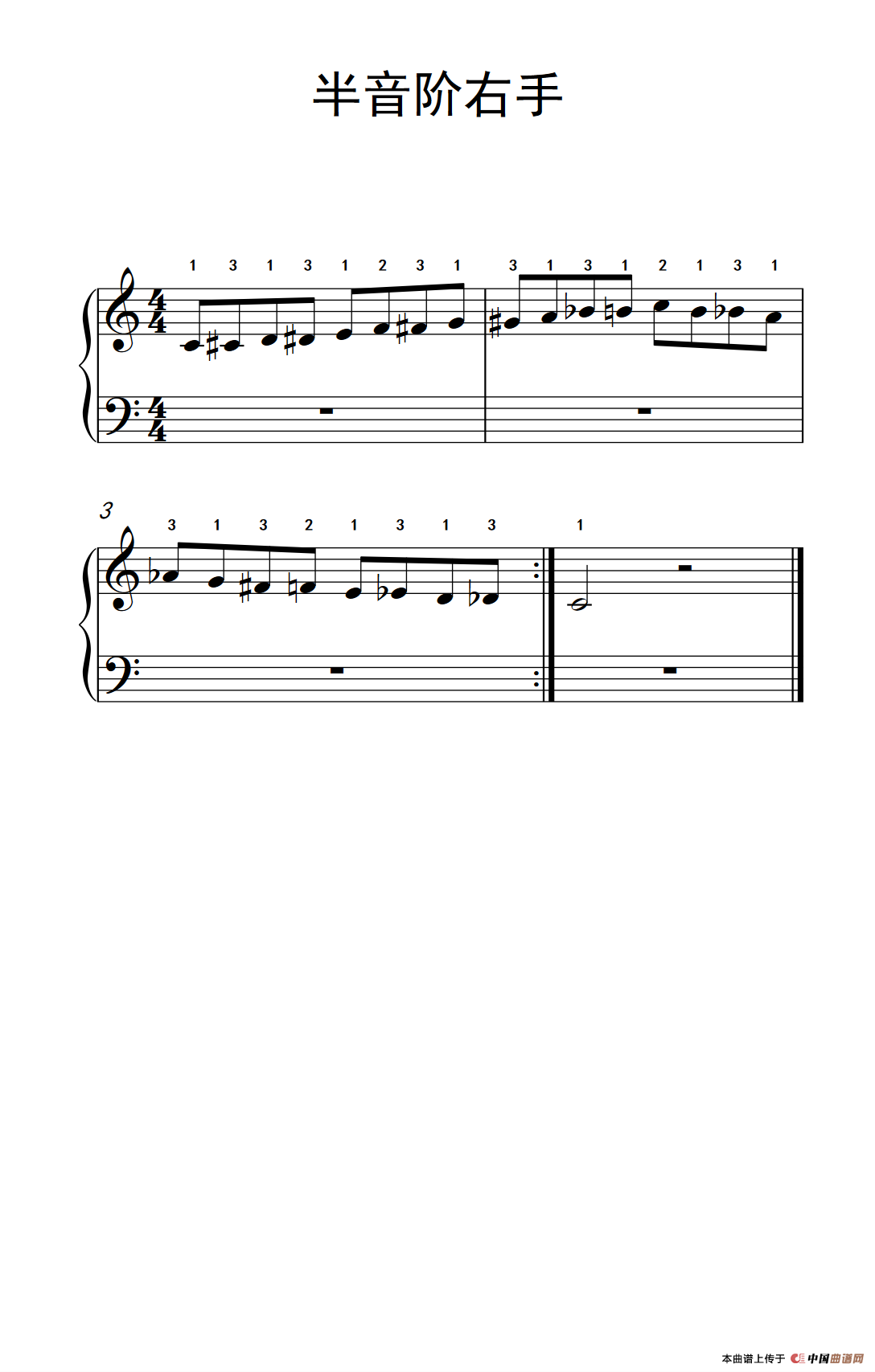 第三级 1.半音阶右手(中央音乐学院 钢琴(业余)考级教程 1-3级)钢琴谱,简谱"