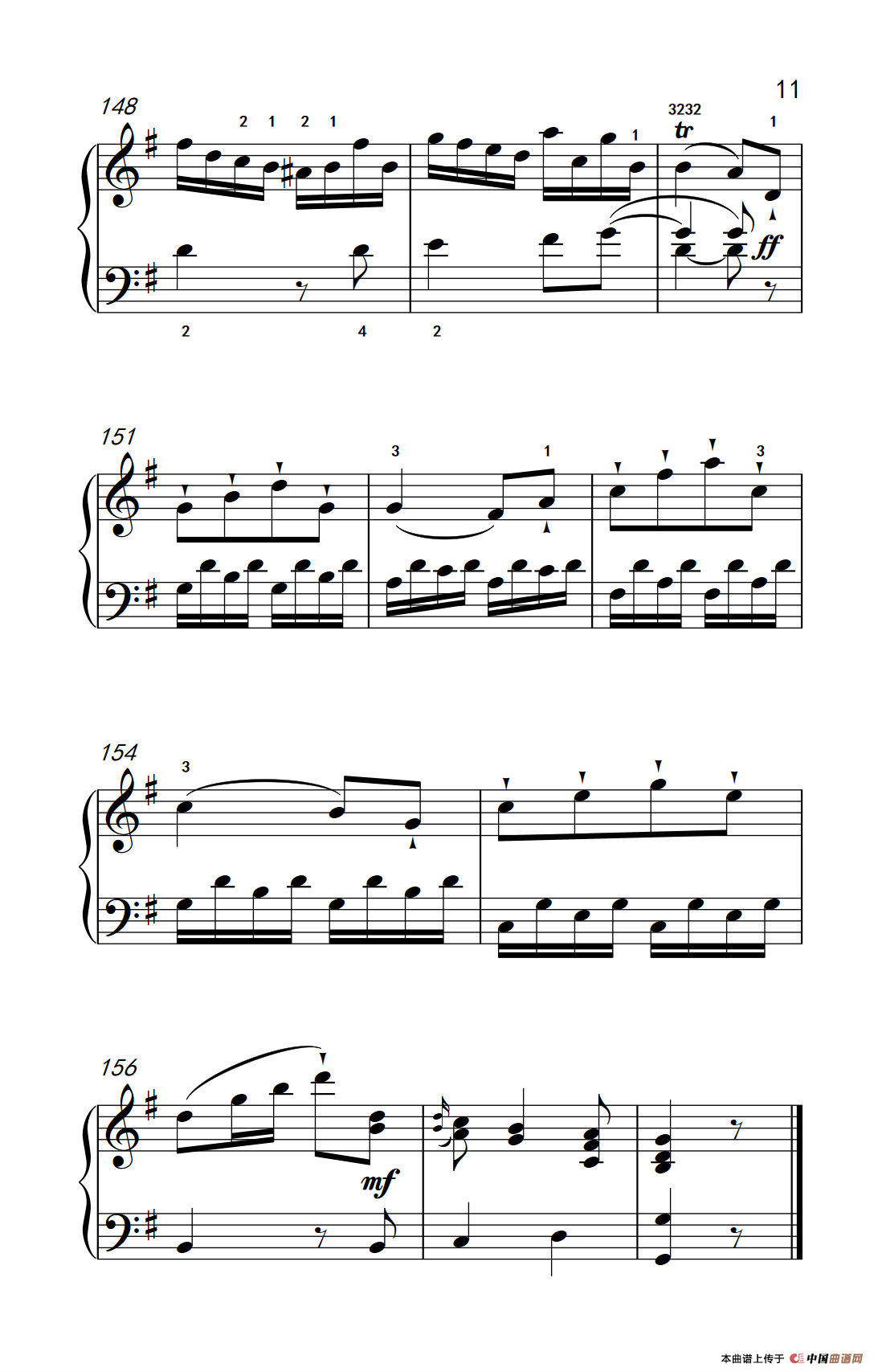 第六级 1.G大调奏鸣曲(中央音乐学院 钢琴(业余)考级教程 4-6级)钢琴谱,简谱"