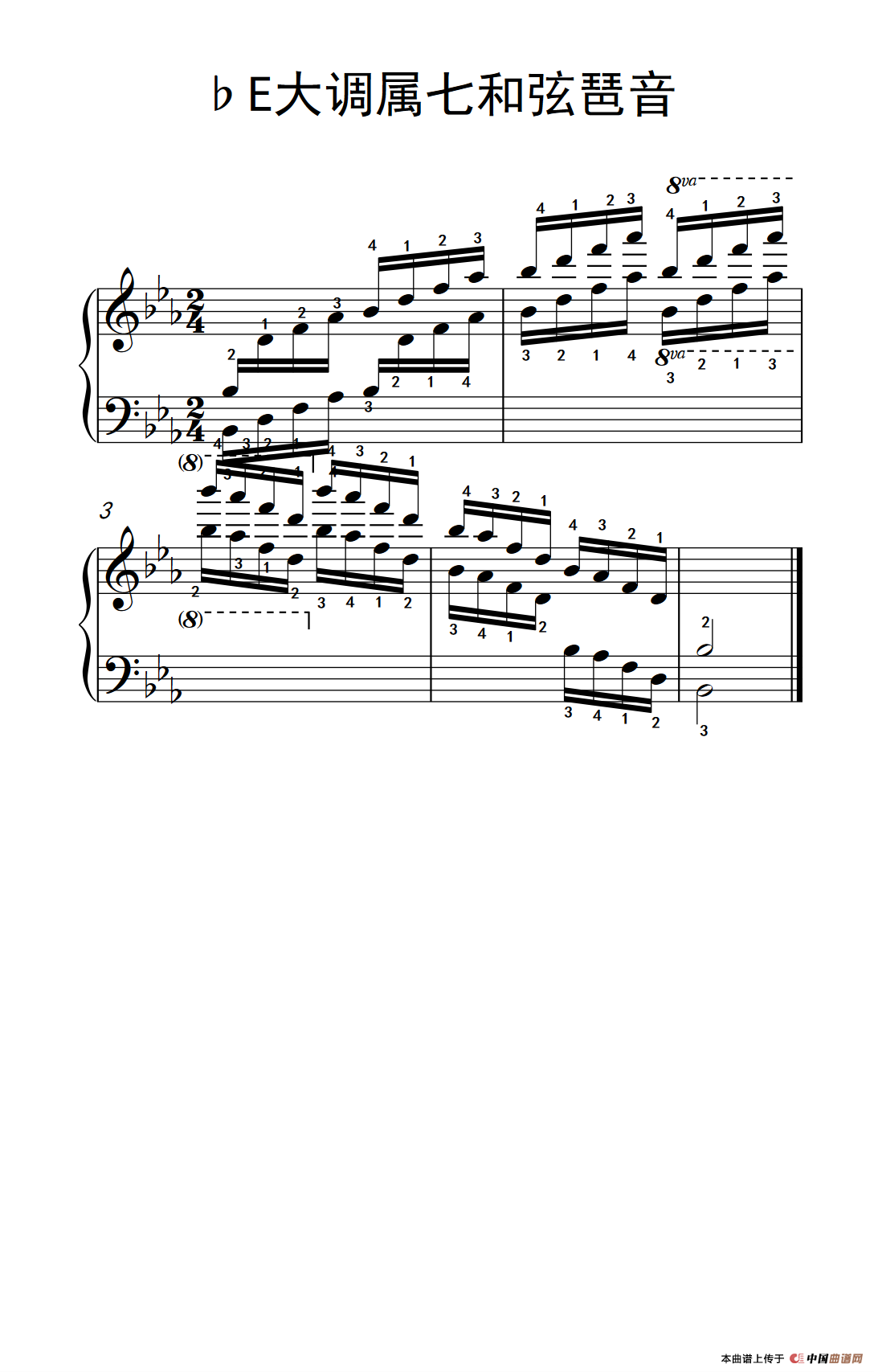 第六级 11.B大调属七和弦琶音(中央音乐学院 钢琴(业余)考级教程 4-6级)钢琴谱,简谱"