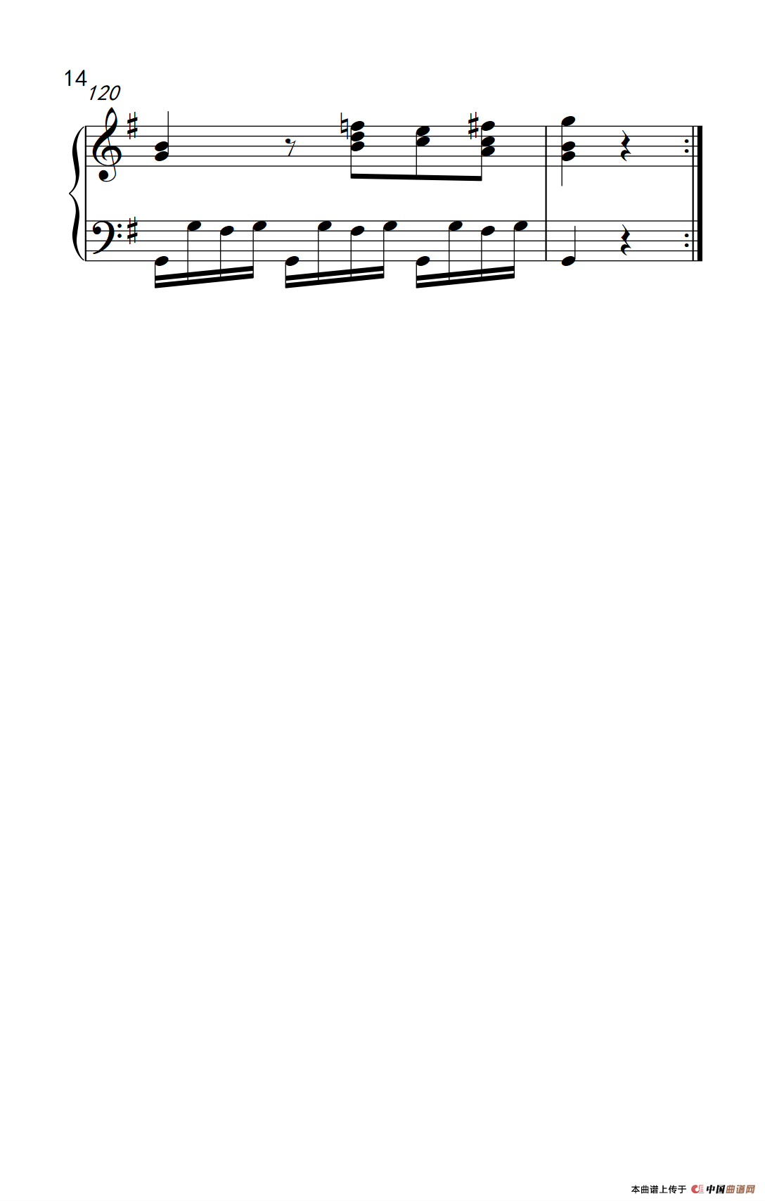 第六级 1.小精灵舞曲(中央音乐学院 钢琴(业余)考级教程 4-6级)钢琴谱,简谱"