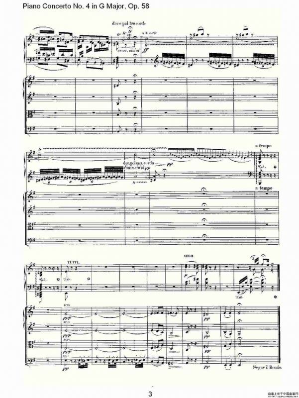 G大调钢琴第四协奏曲 Op.58 第三乐章(总谱)钢琴谱,简谱"