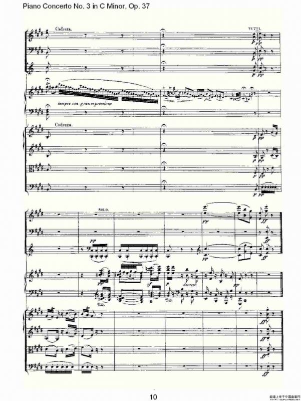 C小调钢琴第三协奏曲 Op.37 第一乐章钢琴谱,简谱"