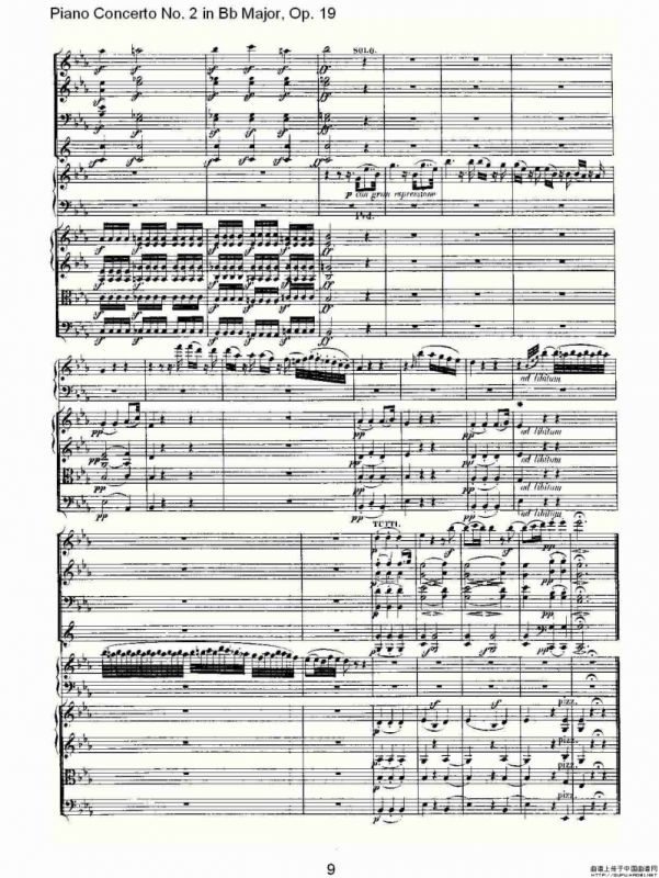 Bb大调钢琴第二协奏曲 Op. 19 第一乐章钢琴谱,简谱"