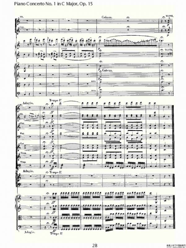 C大调钢琴第一协奏曲 Op.15 华彩乐段钢琴谱,简谱"