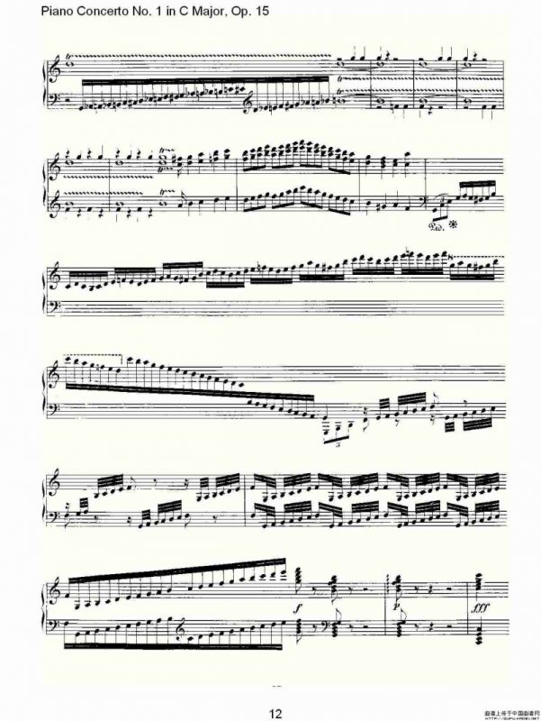 C大调钢琴第一协奏曲 Op.15 第三乐章钢琴谱,简谱"