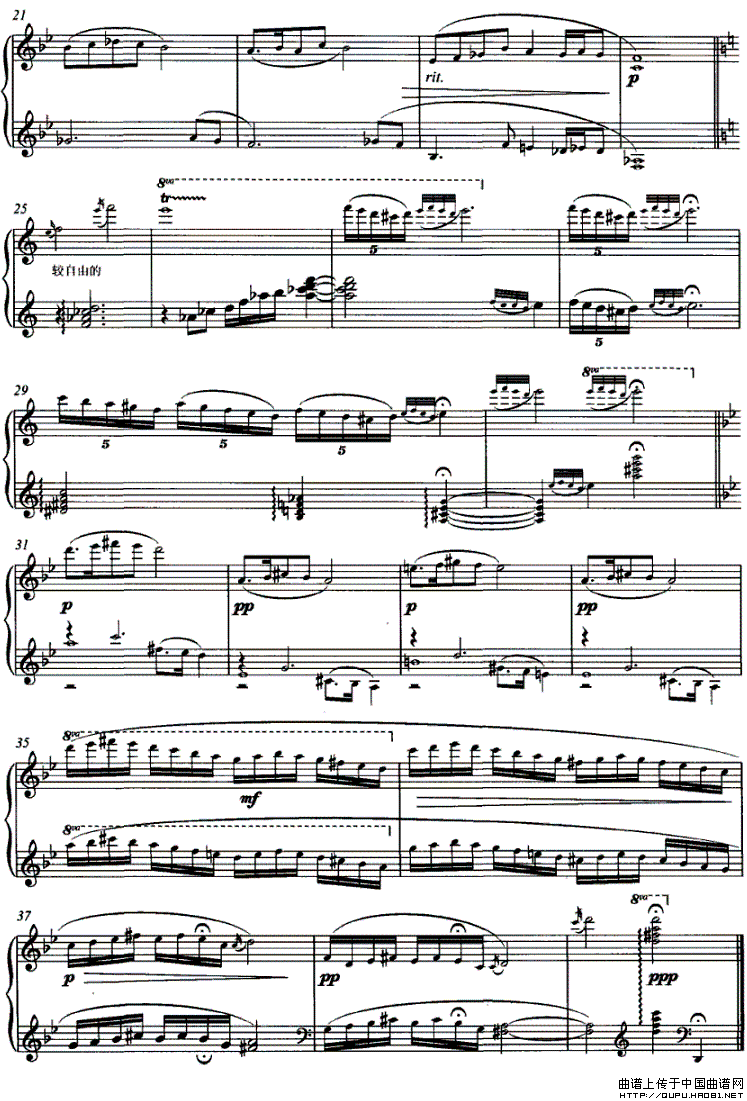 Bb大调钢琴第二协奏曲 Op. 19 第二乐章钢琴谱,简谱"