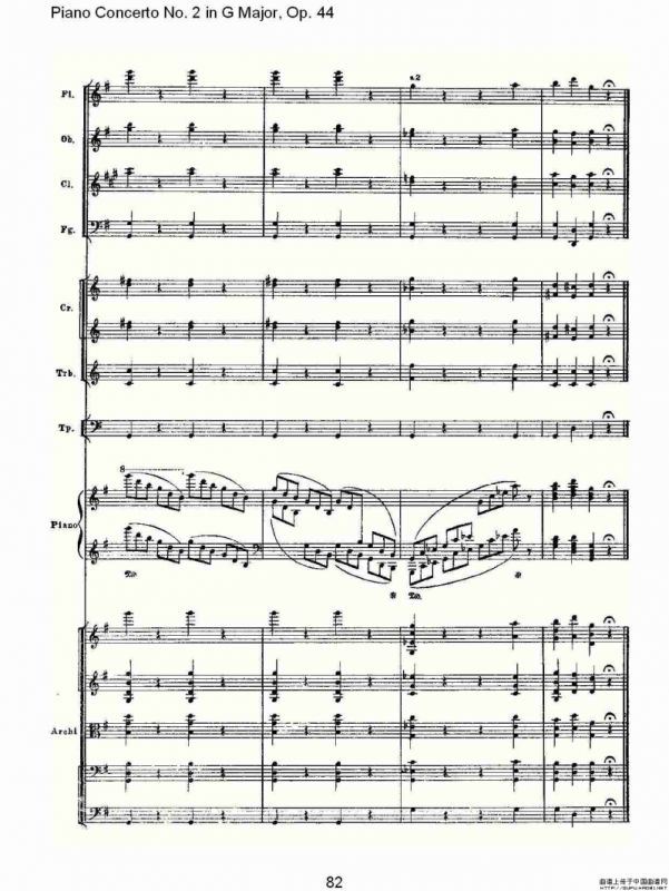 G大调第二钢琴协奏曲, Op.44第一乐章(二)钢琴谱,简谱"