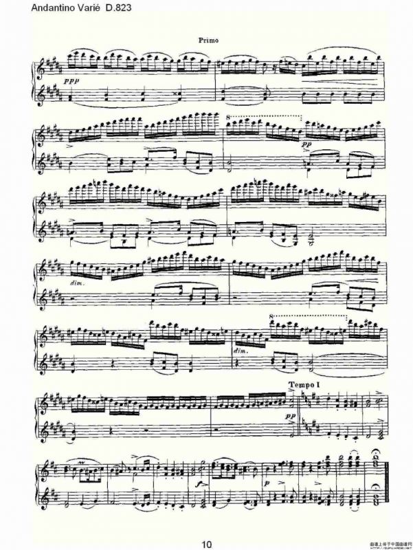 Andantino Varié D.823(小行板杂集 D.823)钢琴谱,简谱"