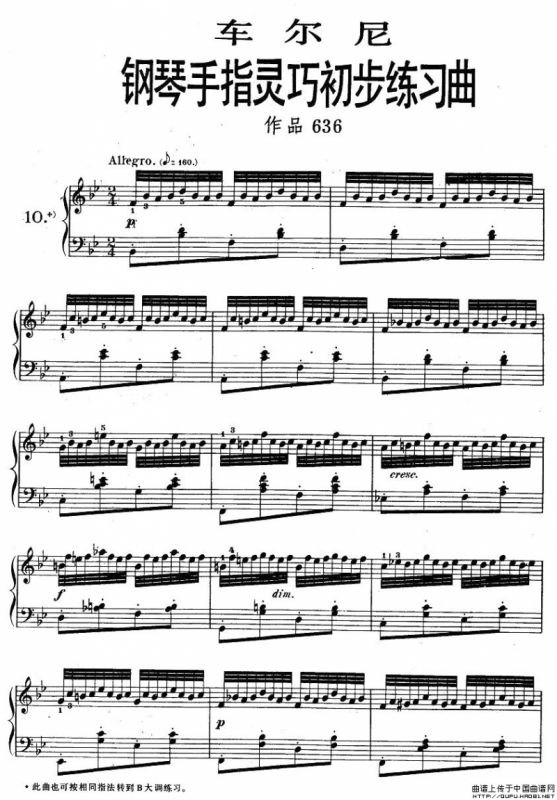 车尔尼《钢琴手指灵巧初步练习曲》之十钢琴谱,简谱"