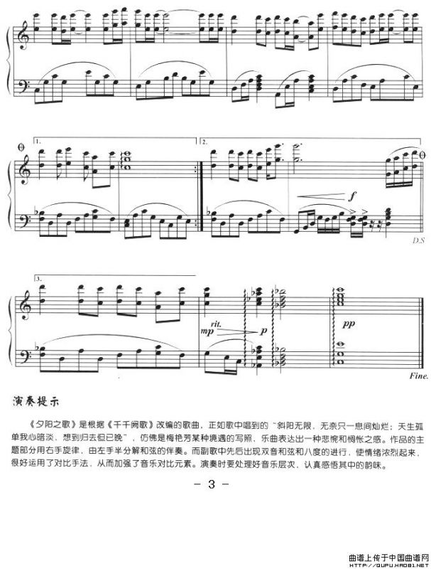 夕阳之歌钢琴谱,夕阳之歌简谱"