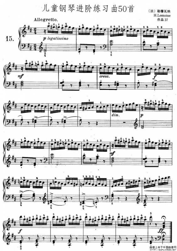 儿童钢琴进阶练习曲50首之15钢琴谱,简谱"