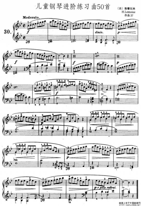 儿童钢琴进阶练习曲50首之30钢琴谱,简谱"
