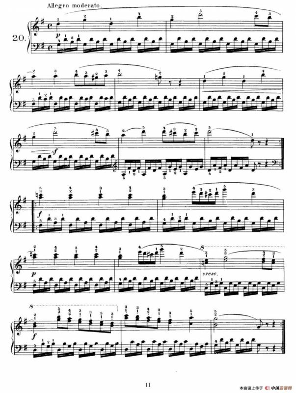 One Hundred and Ten Easy and Progressive Exercises Op.453(车尔尼110首简易练习曲 11——20)钢琴谱,简谱"